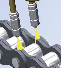 于鏈條的上端,隨著鏈條的運動將鏈條潤滑油涂到鏈條上。