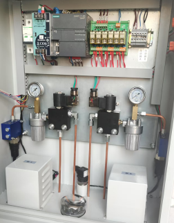 3. 電控系統采用PLC加觸摸屏的控制方式,可接受連鎖控制并能輸出故障信號,噴油時刻微調功能,可設定的傳感器監控時間,能夠對鏈條停止或者傳感器失效進行檢測,具有液位監控和壓力監控等功能,還可以與計算機聯網,實現遠程監控。