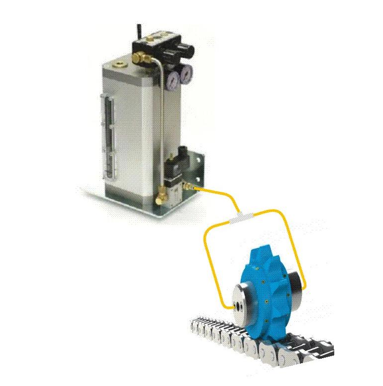 適用于高速鏈條的精確油氣噴射潤(rùn)滑,特別是當(dāng)鏈條鏈距小,速度高,其它潤(rùn)滑方式無(wú)法達(dá)到潤(rùn)滑要求